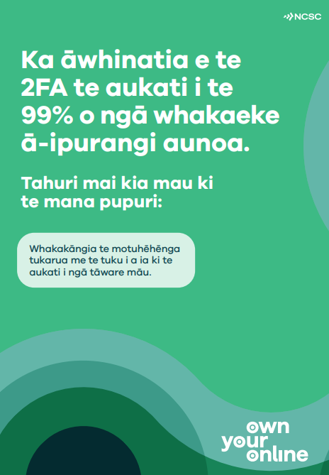 Take a moment to own it 2FA poster in te reo Māori